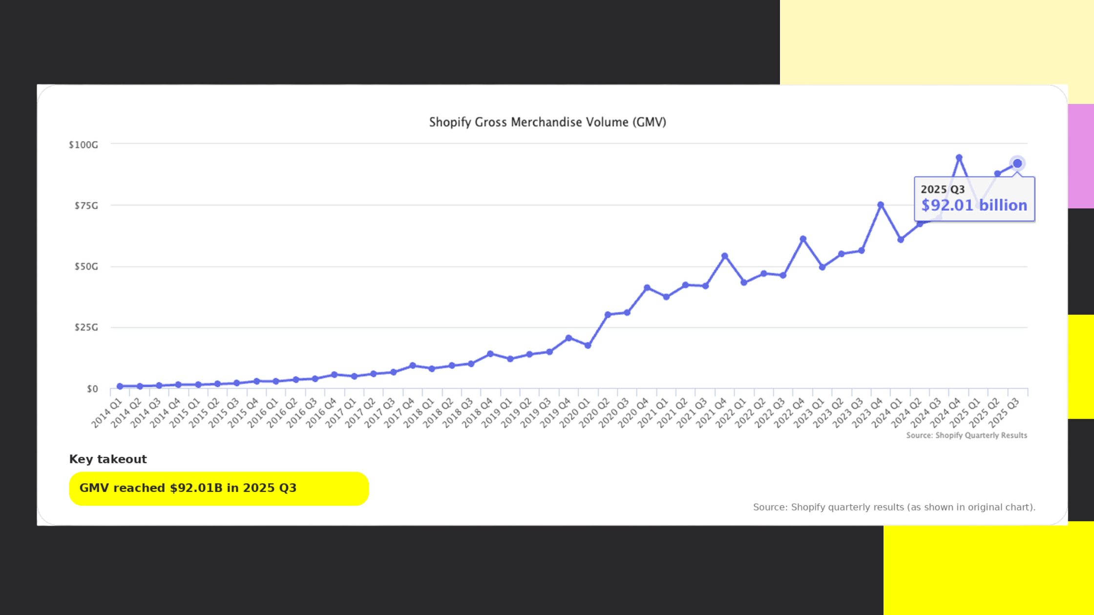 By Q3 2025, Shopify processed $92.01 billion in GMV in a single quarter, a milestone that reflects more than just merchant growth. It shows how deeply Shopify is embedded into how modern commerce actually operates. Online, in-store, cross-border and wholesale are no longer separate motions. They are part of one connected system, and Shopify keeps strengthening that system quarter after quarter.