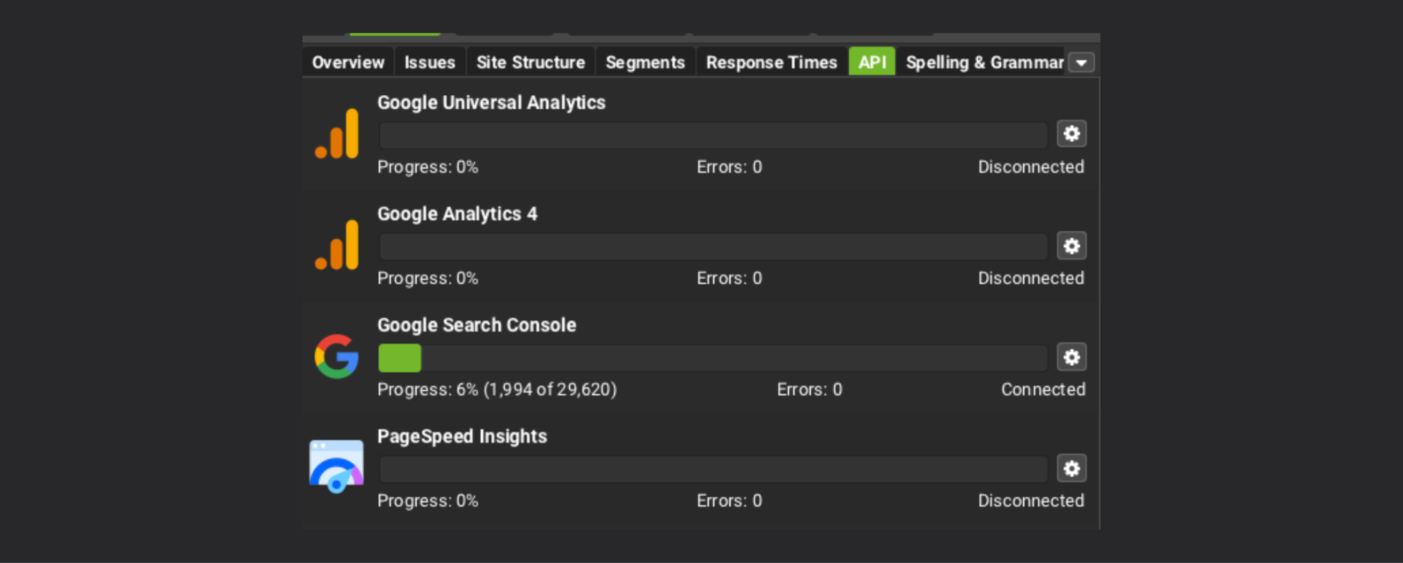 It can surface status codes, metadata, canonicals, internal links, redirect chains, structured data, headings, word counts, and much more. It can also connect with platforms such as Google Search Console and GA4 to enrich crawl data with performance insight.
