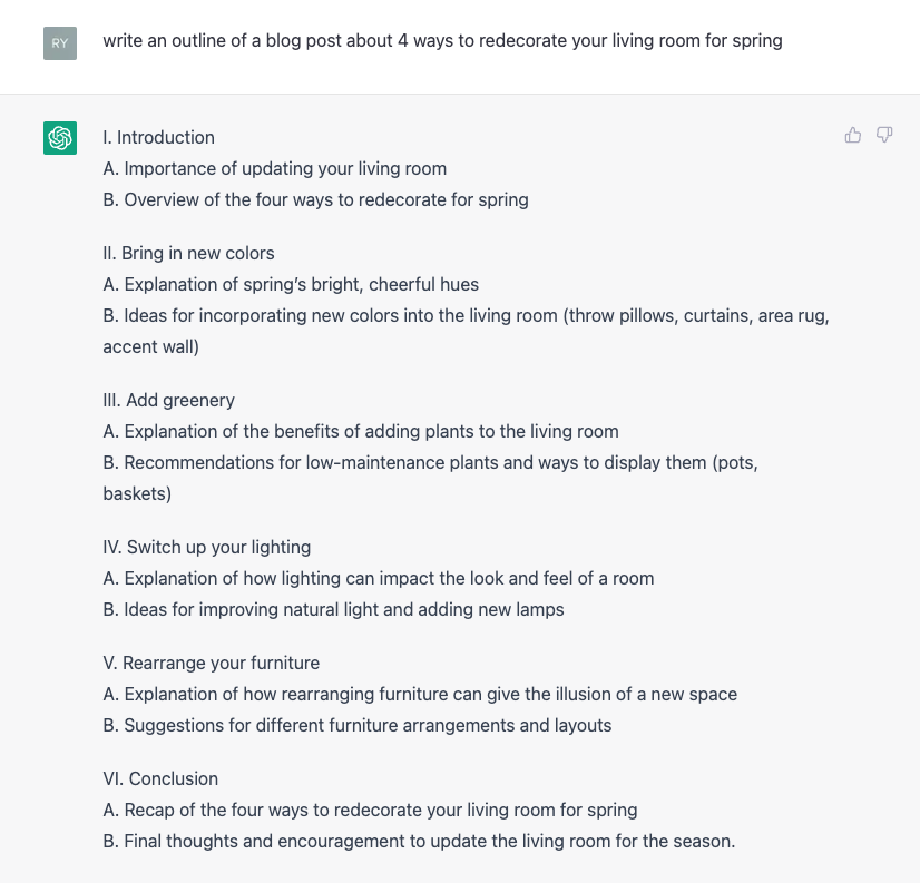 Here we asked ChatGPT to produce a blog post about redecorating for spring: