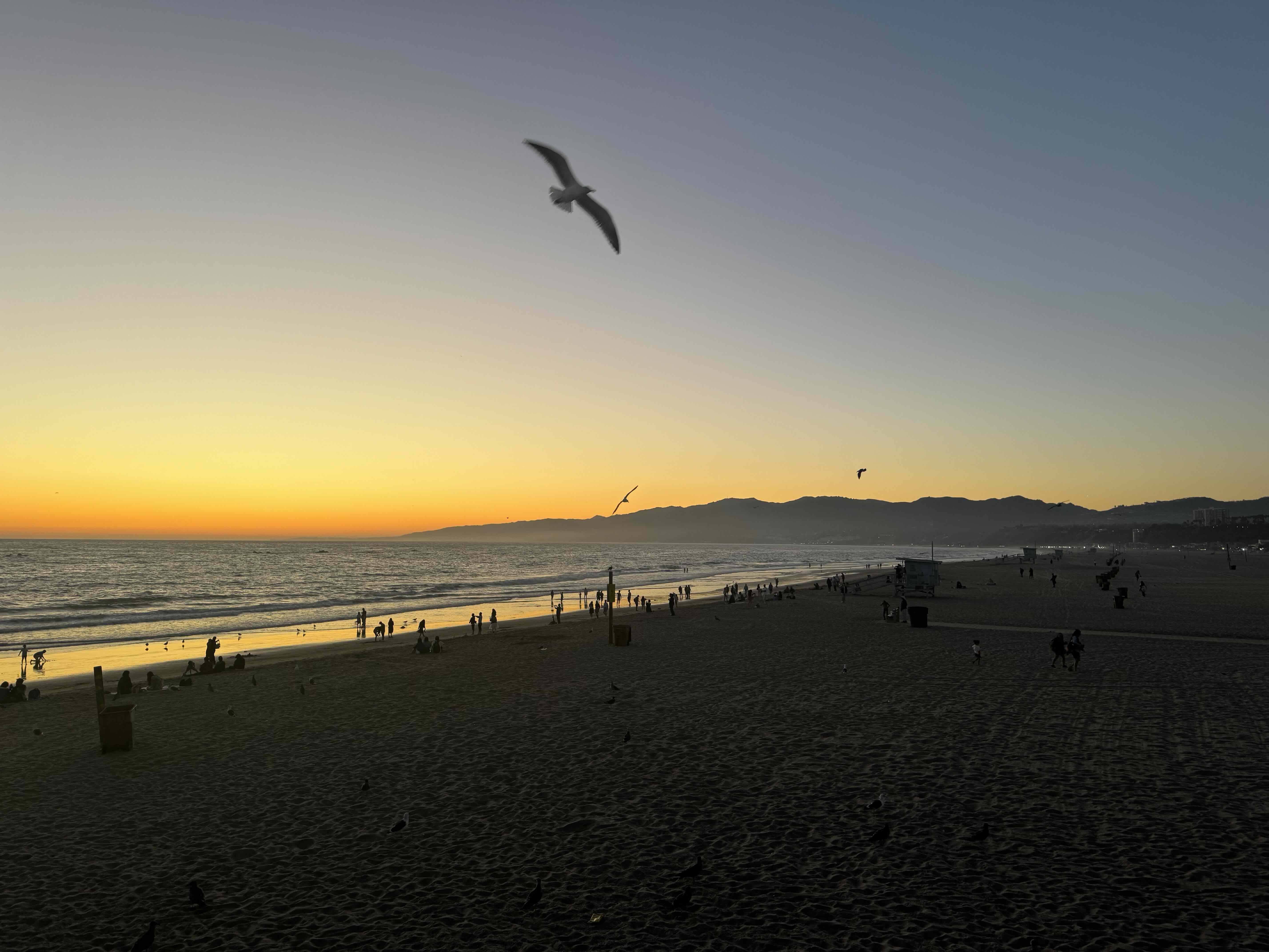 As the sun set on an amazing two days, a local Californian gave us a recommendation for our final evening in LA, telling us to make the most of the unseasonably warm sunshine by getting on over to Santa Monica. Get on over we did, arriving at the world famous Santa Monica Pier just in time to enjoy the most spectacular sunset across the Pacific Ocean. Our phones couldn’t take pictures fast enough, before we strolled across the deck of a pier that marks the end of the historic Route 66.