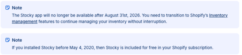 If you rely on Stocky day to day, now’s the moment to map what you use it for (POs, receiving, stocktakes, transfers, forecasting) and make sure each workflow has a clear home inside Shopify’s native inventory features before the August 2026 deadline.