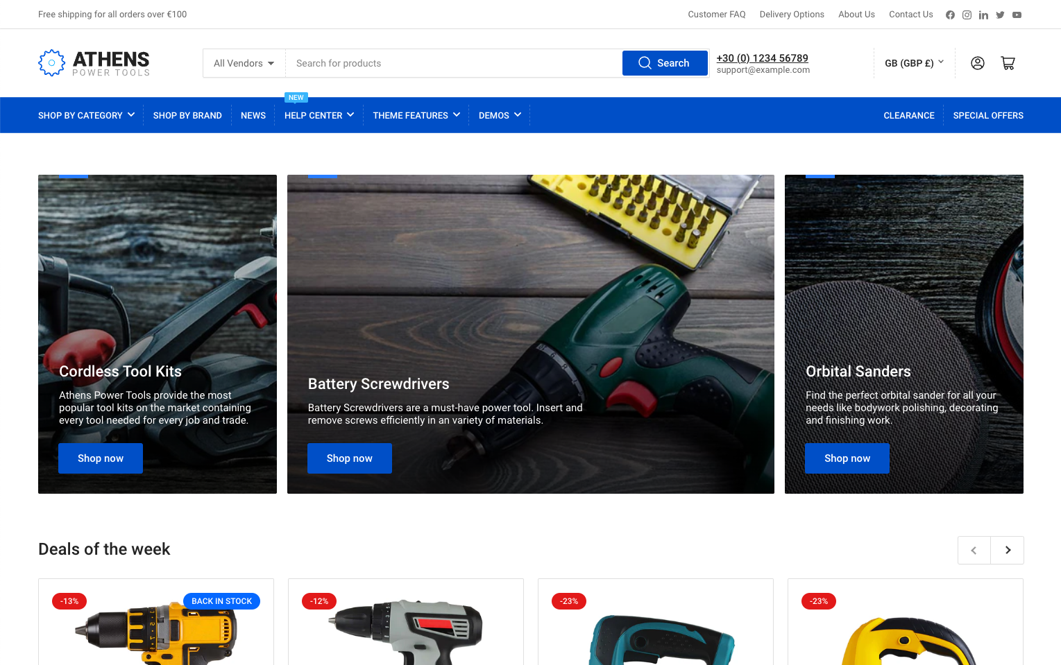 Athens is a great theme for creating both a successful B2B store and a store that fits your brand's personality. The theme itself includes multiple layouts and styles, perfect for fitting different business niches, all while keeping the functionality a B2B theme needs in mind.