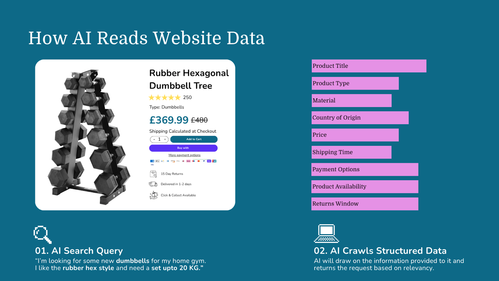 If key information is hidden in front-end logic, vague naming conventions or disconnected systems, it becomes harder for AI channels to interpret and surface your products accurately.
