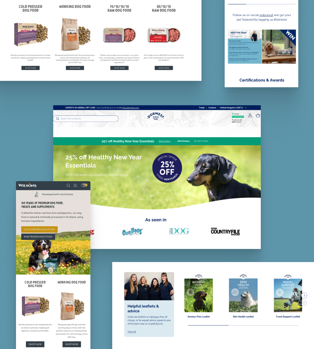 Dorwest is the UK’s leading expert in herbal pet care, producing natural supplements and remedies for dogs and cats backed by over 75 years of experience. Kubix migrated Dorwest from a legacy eCommerce system to Shopify Plus, delivering an easy-to-manage store that balanced heritage with modern usability. The migration included complete data transfer, a structured SEO redirect plan, and recorded training sessions to help the team manage their new platform confidently. We unified DTC and B2B operations under one platform with a Brightpearl integrations for centralised stock, customer, and order management. This consolidation simplified processes and improved operational efficiency across both retail and trade channels. To strengthen conversion and retention, Kubix implemented a performance-driven tech stack featuring upsell and subscription functionality and enhanced merchandising. The result was a platform that improved product discovery, encouraged repeat purchases, and gave Dorwest the tools to grow with confidence.