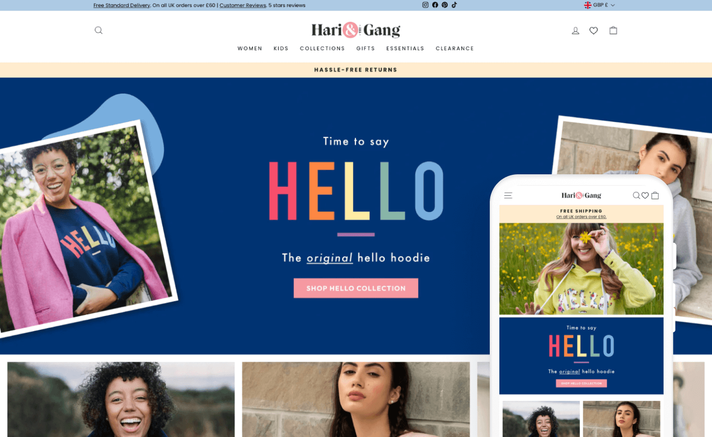 We broke down the Hari & The Gang audience into various Buyer Personas. These varied from the ‘Yummy Mummy’ - a young, independent career-driven mother who remains savvy on social media, through to the ‘Independent Woman’ - not necessarily family-oriented, but looking for bold, cosy and adaptable clothing brands. Our aim was to find out exactly what these types of buyers were looking for from their Hari & The Gang shopping experience, and to emulate and roll this out across all of our content, advertising and social media marketing. We tailored our ads according to the various buyer segments, and quickly saw an uptake in results. A lot of customers had also been searching for their popular ‘Hello Hoodie’, yet they weren’t ranking highly for this keyword. Some light SEO later, and Hari & The Gang were also steadily ranking up the Google results pages.