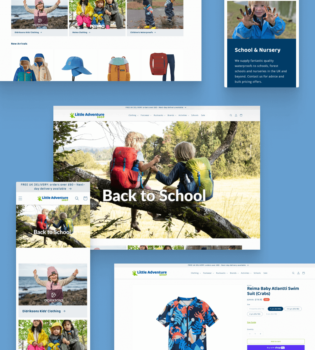 Little Adventure Shop came to life as a premium outdoor kids clothing brand, selling activity-ready clothing for babies, toddlers and children alike. Bringing her love of the outdoors to her brand, business owner Rebecca took inspiration from her own growing family and their summer holidays to create a diverse collection of clothing and accessories for the adventure-seeking families ready for any outdoor challenge.