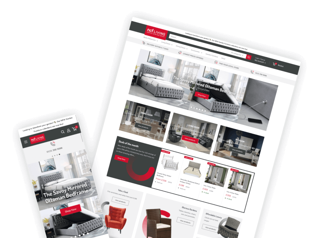 As both lockdown and summer rolled around, our next step was to identify new retail opportunities for the NCF team. Having worked with other furniture brands in the past, our commercial team knew that garden furniture was a big hit online and had huge growth potential, given the increased time people were spending in their homes. After taking our recommendation and flooding the site with garden sofa sets and tables, they saw the biggest rise in sales yet. With hundreds of thousands of pounds now under their belt, Soheb and his team knew it was time for the next big step: the bespoke website that they’d waited over a year to bring to life.