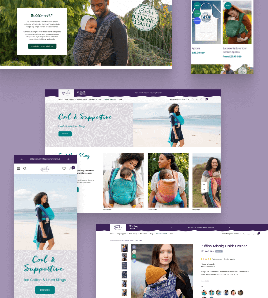 Oscha Slings is a Scottish baby-wearing brand dedicated to supporting child development and promoting secure attachment through ethically made baby wraps, slings, and carriers. Kubix migrated Oscha Slings from a custom-built platform to Shopify, creating a flexible and self-sufficient system that removed the risks of their legacy setup. The new store empowered the team to manage and update content with ease, while maintaining the brand’s premium look and feel. The migration process involved transferring complex product data, variant structures, guides, and educational content, ensuring every detail of Oscha’s catalogue and community resources was preserved. The new site introduced flowing, nature-inspired design elements, reflecting the brand’s commitment to sustainability, inclusivity, and connection. To enhance performance, we implemented Shopify Markets for international selling, personalised upsells, and ShipStation for efficient fulfilment. The result is a modern, scalable eCommerce experience that blends technical strength with the heart and heritage of Oscha’s mission.