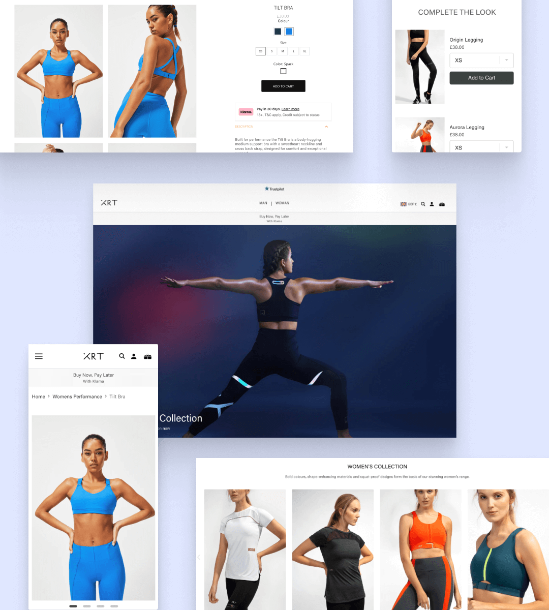 High performance activewear needs a high performance website that streamlines and highlights the most important aspects of the brand. Drawing inspiration from athleisure brands - from the iconic simplicity of Nike to the powerful imagery of Under Armour - we needed the streamlined design to seamlessly collaborate with functionality and performance. We developed an image focussed product page that would shout about the style and features with large product images, feature icons and embedded product videos on autoplay. XRT wanted to be all about the look, and we knew that these product pages needed to be too.